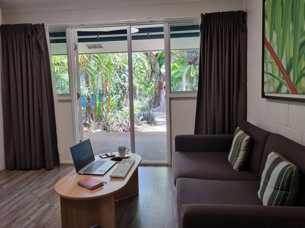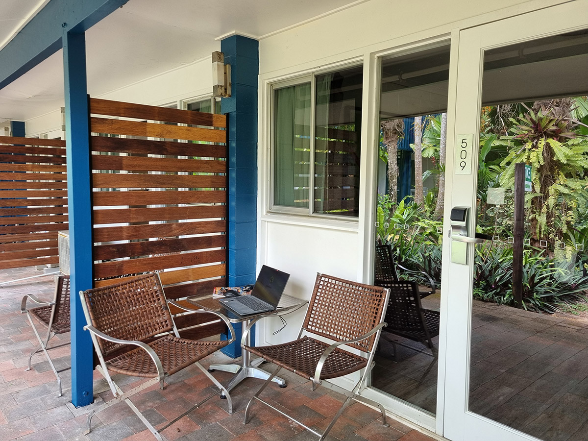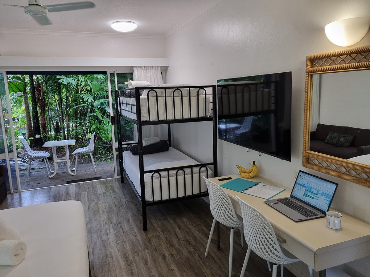 Wake up to abundant natural light and tranquil views across the Royal Poinciana’s lush rainforest. Each Premium Studio offers 25 m² of thoughtfully designed space with high ceilings, giving you room to unwind and breathe. Step onto your private terrace—complete with a table and chairs—where you can read, plan your next adventure, or send a quick email while sharing the moment with a curious curlew or friendly green tree frog.